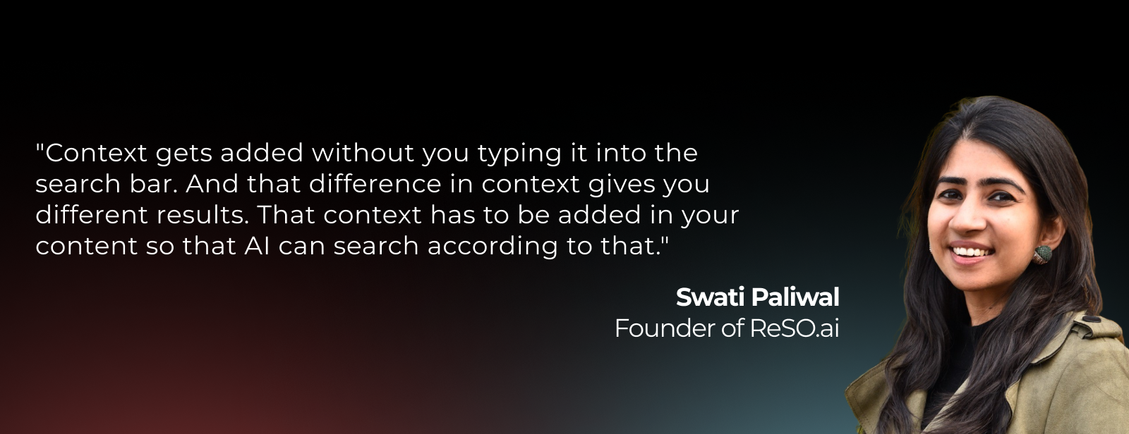 When someone searches on ChatGPT, the platform already knows who they are from their conversation history. It adjusts the answer based on whether they are a developer, a student, a founder, or an enterprise buyer, without the person having to type any of that into the search bar. As Swati explained,